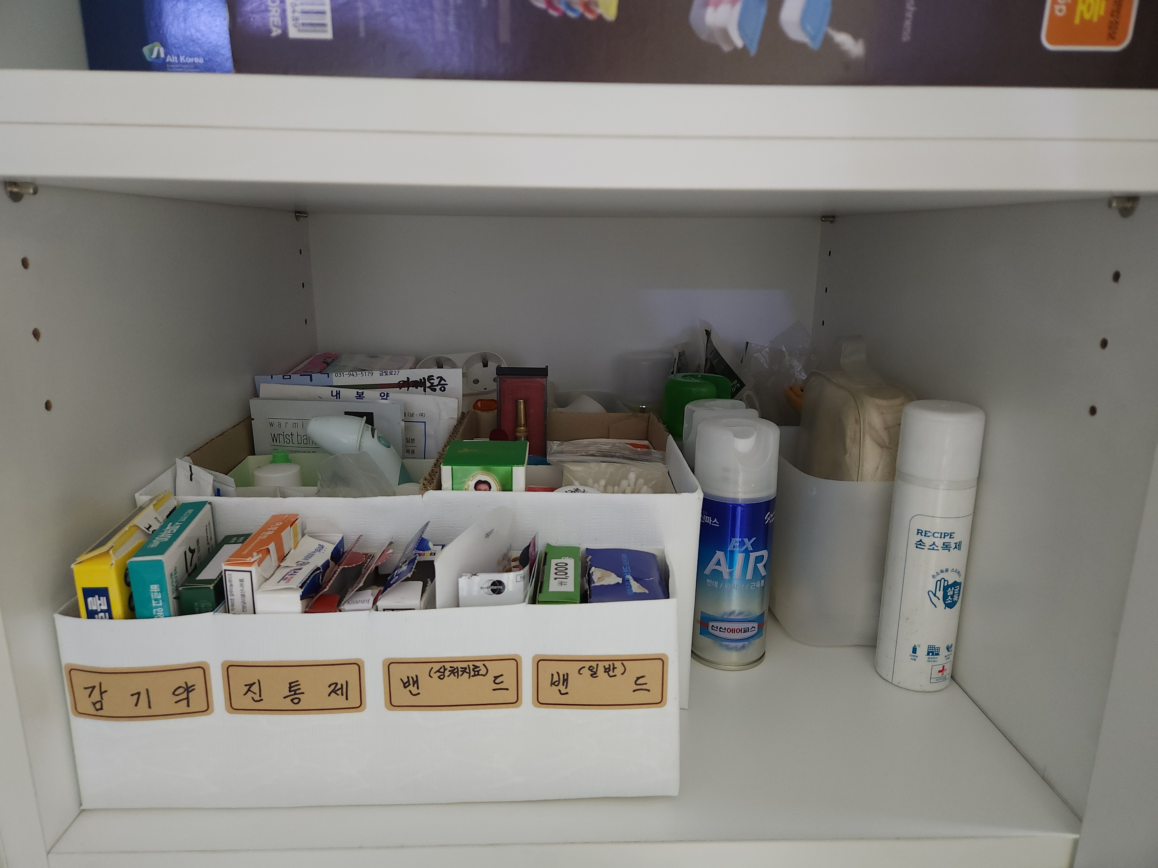 구급약 서랍장 안에 우유팩과