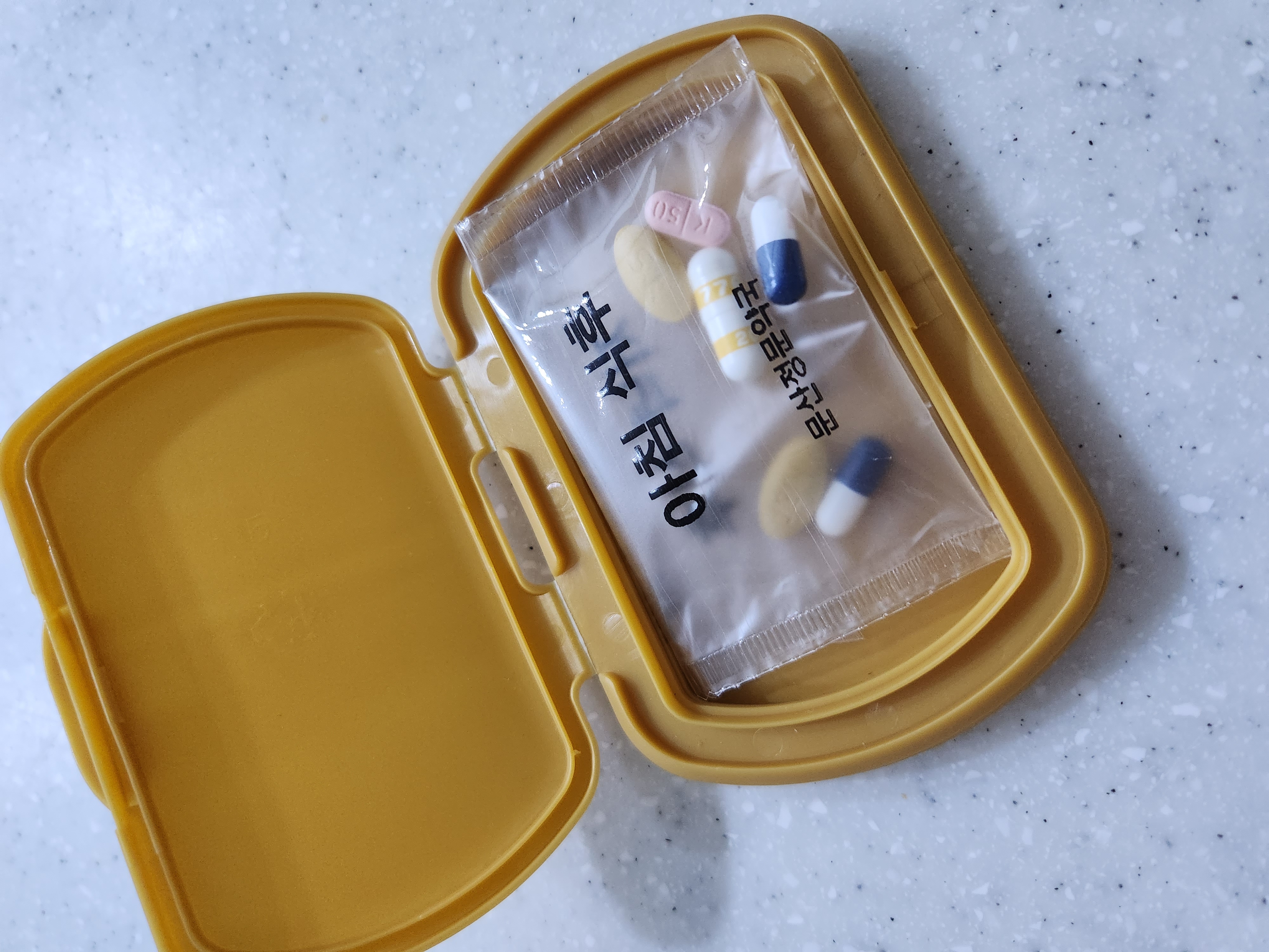 매일 약을 먹어야 하는데 가방속 이리저리 돌아다니는게 지저분해서 물티슈캡을 재활용 해서 약 지갑을