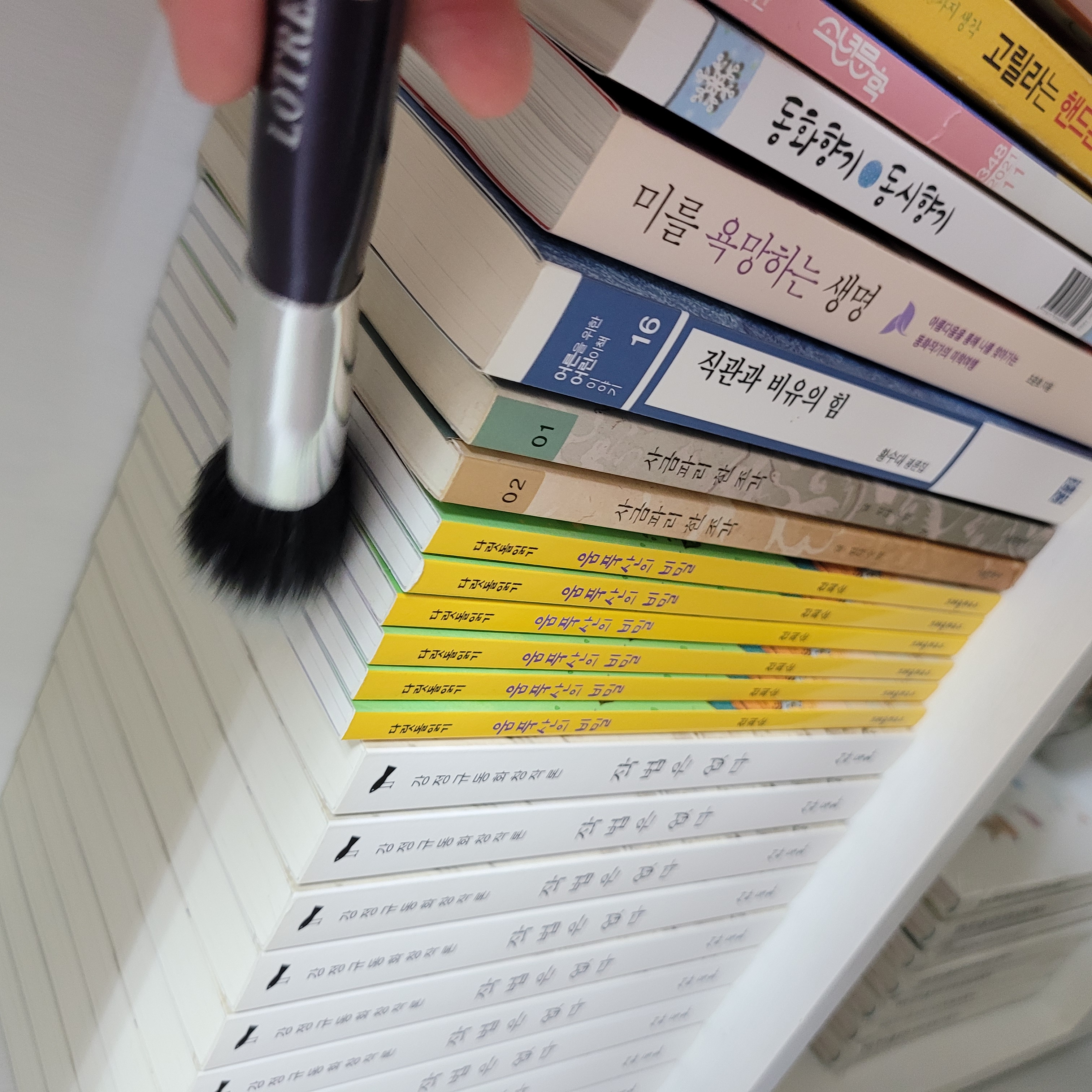 먼지털이로 대강 털기는 했는데 책 위에 쌓인 먼지를 하나하나 털기에는 좀 부족했지요.