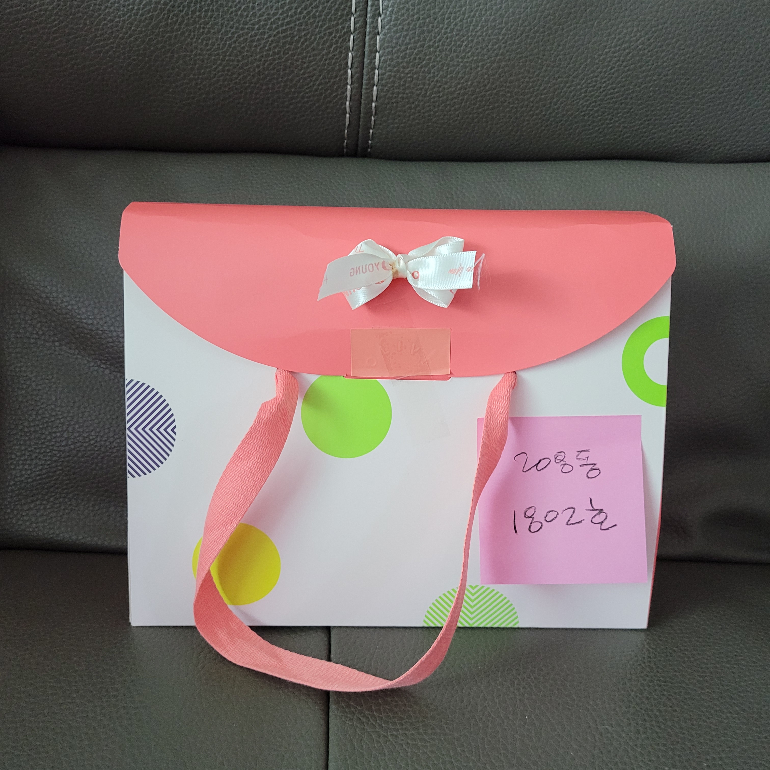 봉투를 찾다가 선물받을때 함께 왔던 포장가방을 재활용했어요.