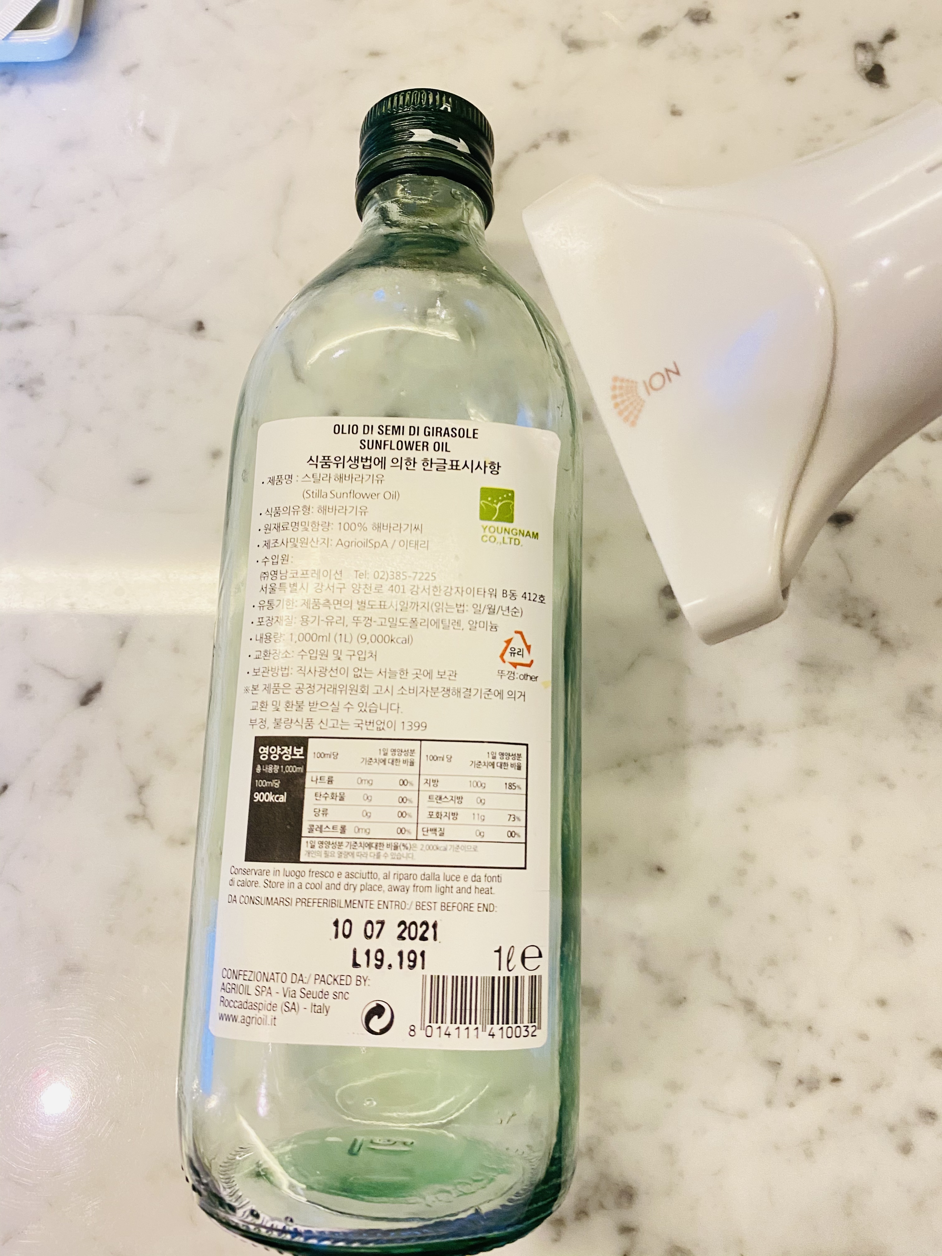 해바리기씨 오일 병 라벨, 뚜껑 잘 분리해서 제대로 분리수거해요.