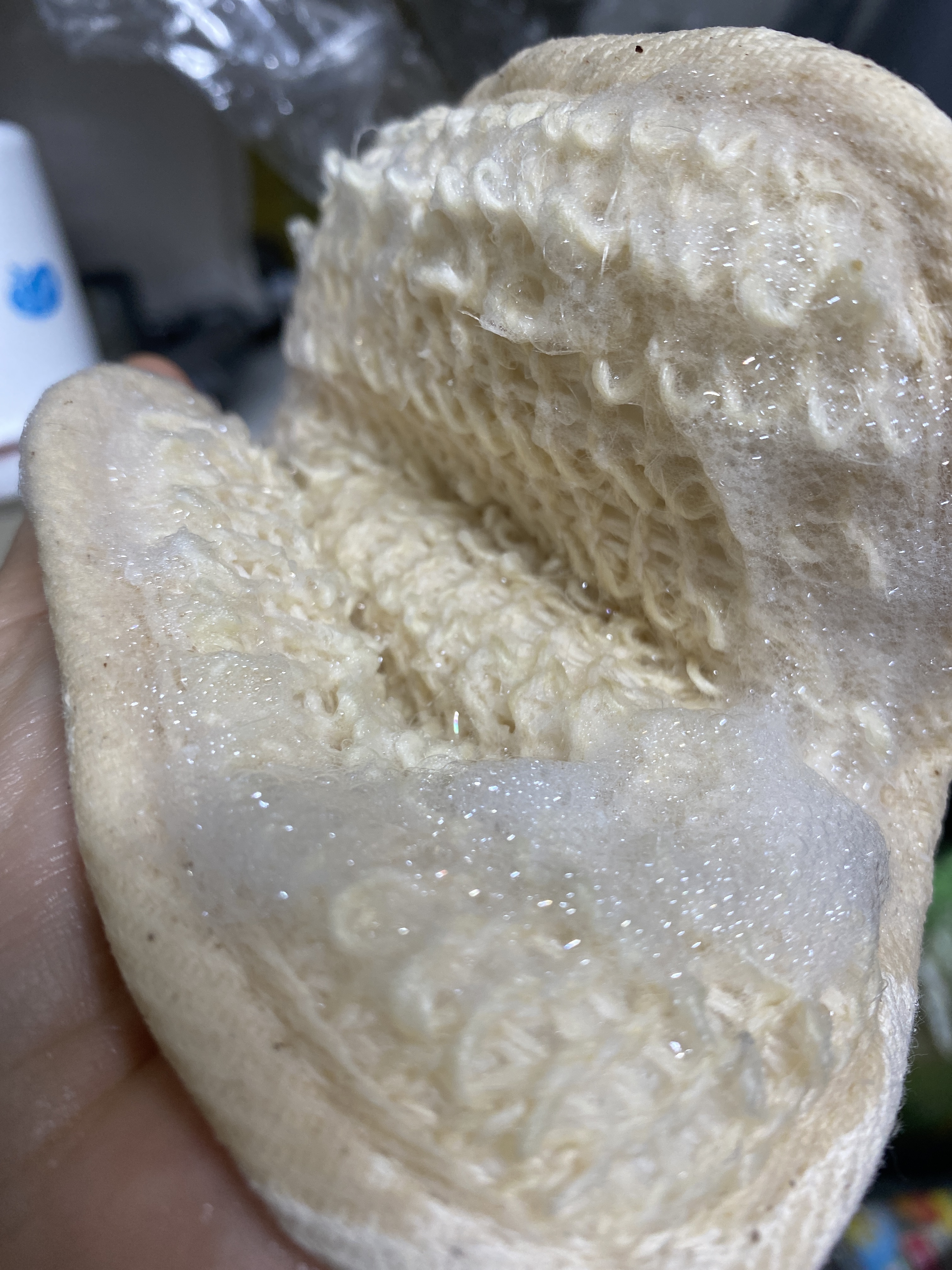 뻣뻣한 느낌에 둥절했었는데 ^^ 미지근한 물이 닿으니 보드랍고 쿠션감있게 변하네요. 손잡이까지 센스있어서 수세미 놓치는 일 없이 잘 사용할 수 있겠습니다.