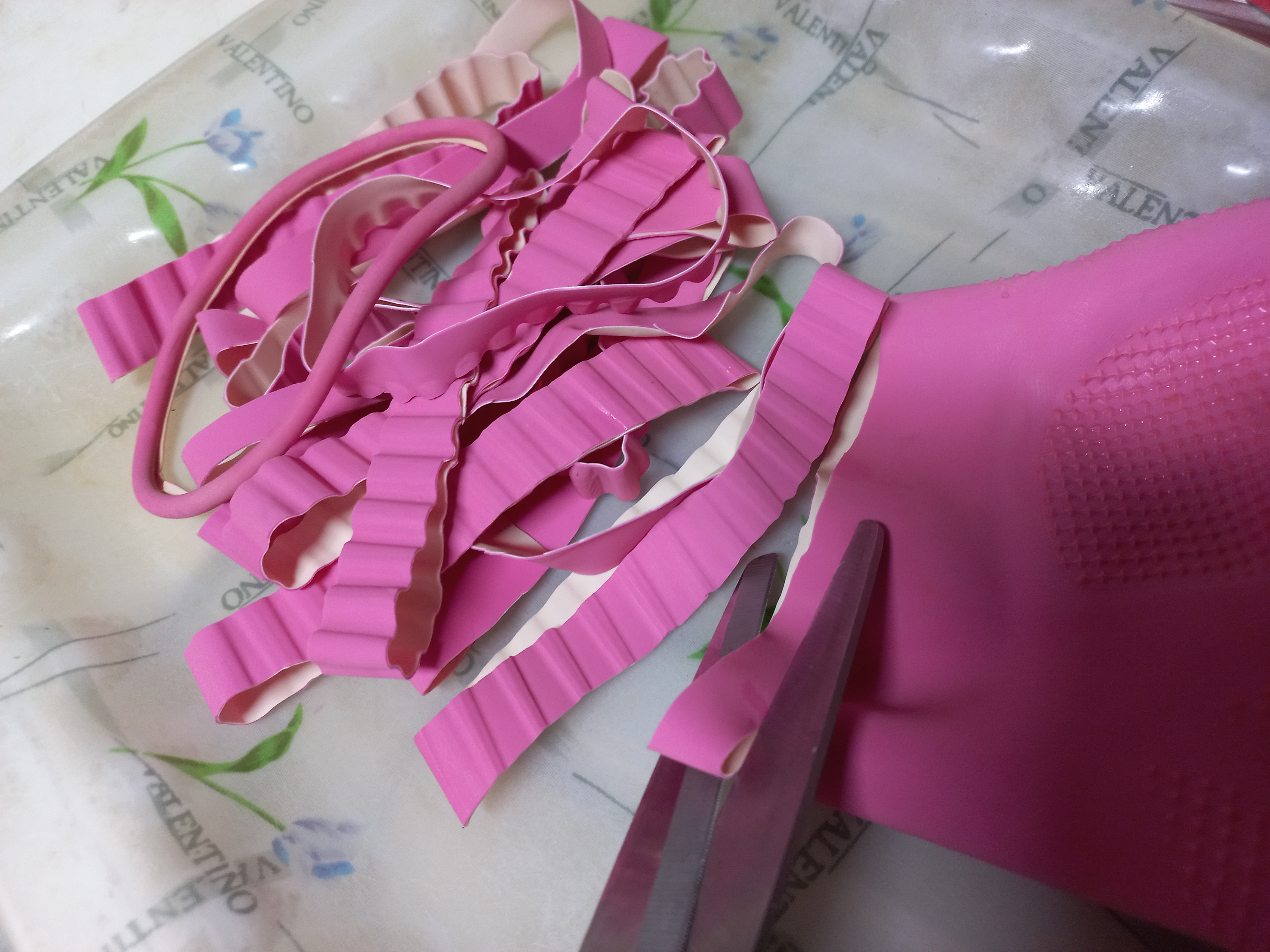 고무장갑 한쪽이 찢어져 재생불능이 되었네요.