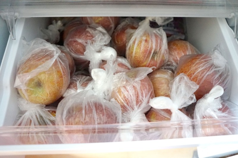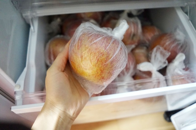 마침 명절 선물로 사과가 한박스 들어왔는데 세식구가 먹기는 많은양이라 이 비닐들을 이용해 하나하나 포장했어요. 사과 한박스를 다 포장하고도 비닐이 남았어요!
