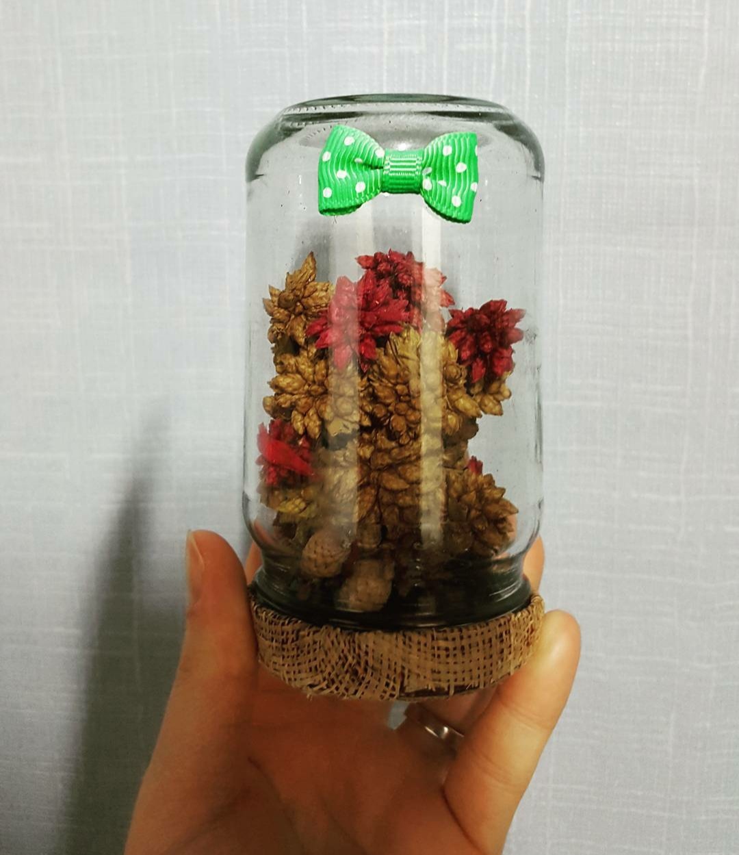 뚜껑도 모아뒀던 포장지로 싸고 깜찍한 리본 하나