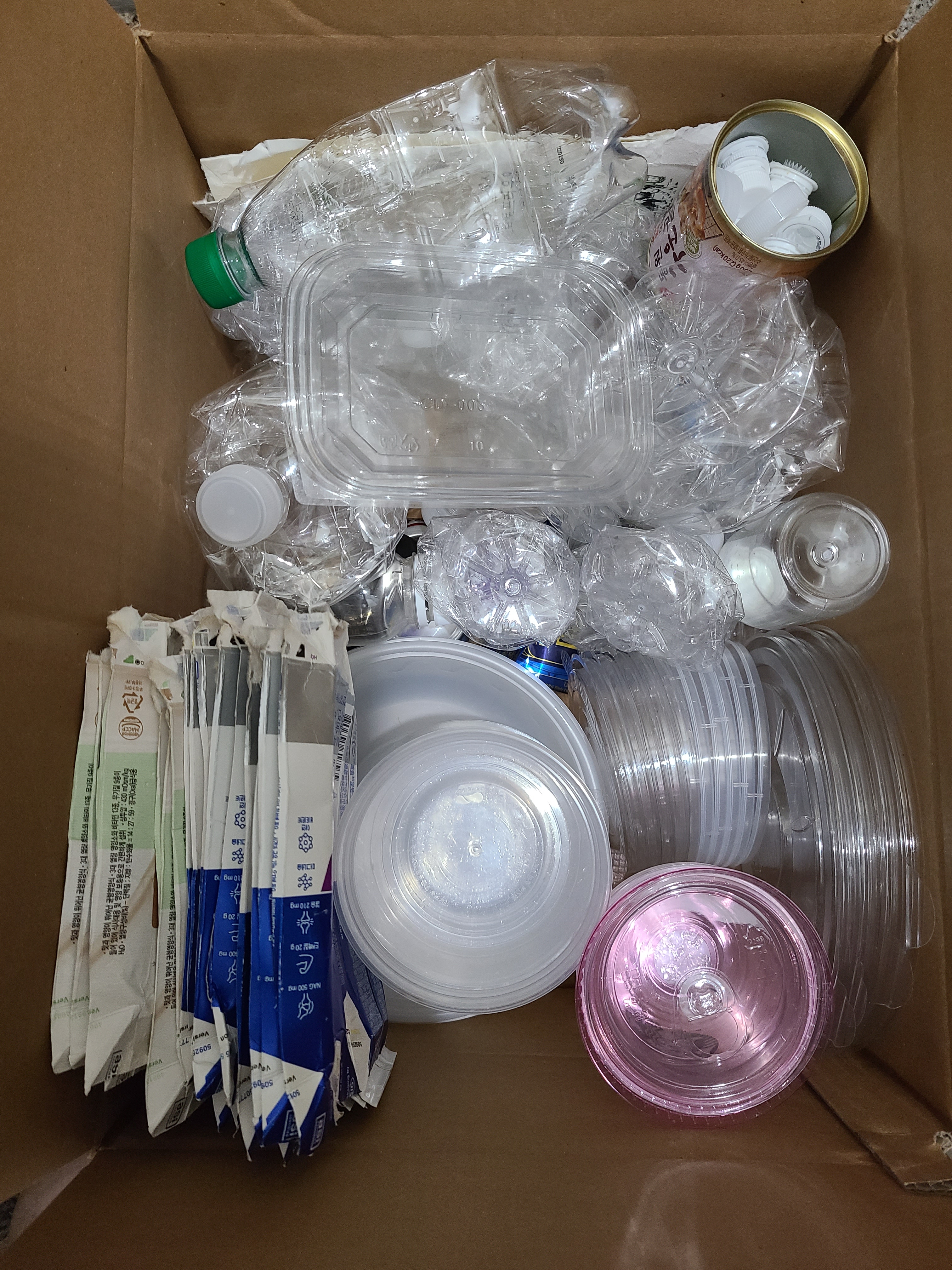 깔끔하게 모으면서 갯수를 세어보니 생각보다 플라스틱 사용이 진짜 많더라구요.