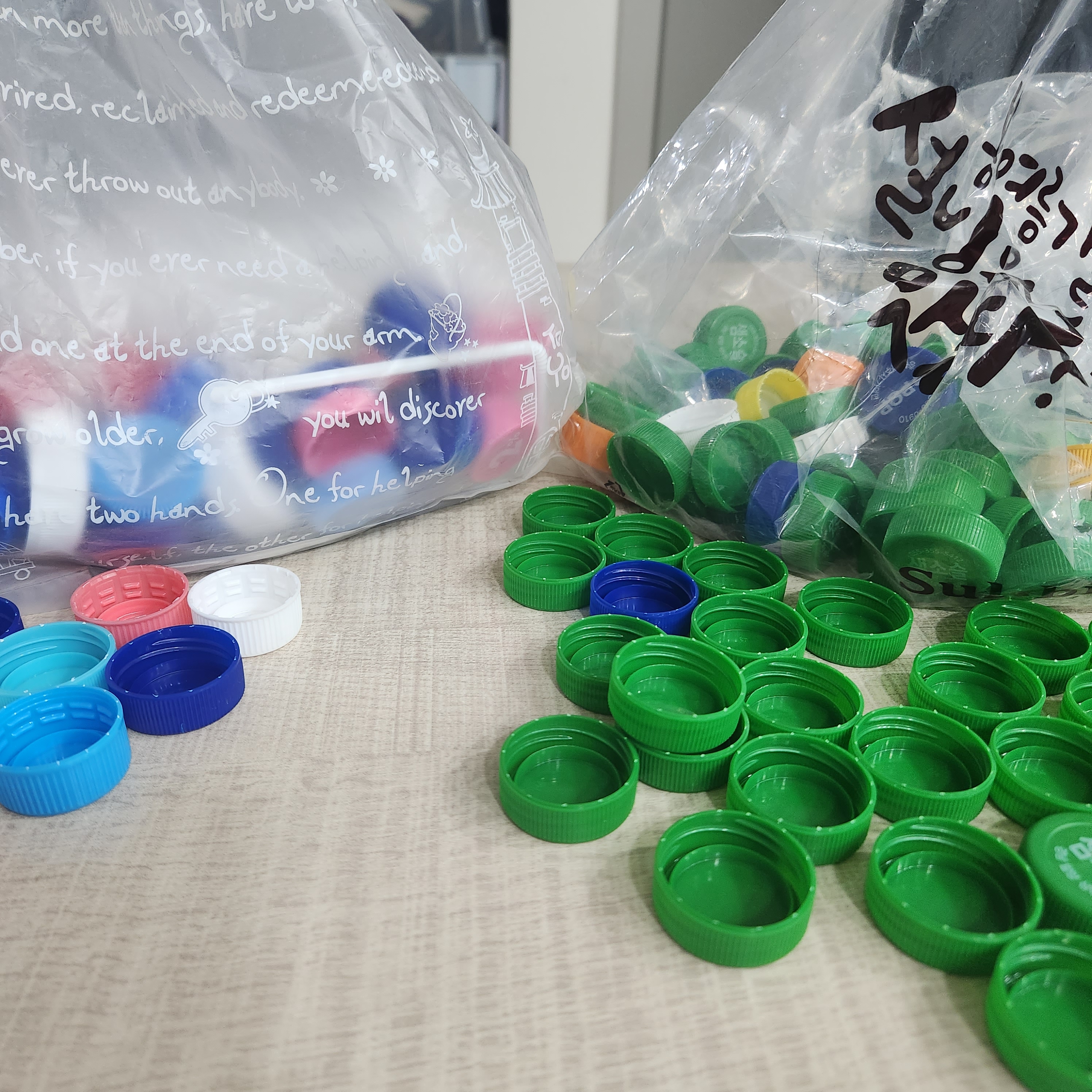 플라스틱 뚜껑 수집 약 3개월차 분류한 PP, HDPE 종류 각 중간 수량 체크