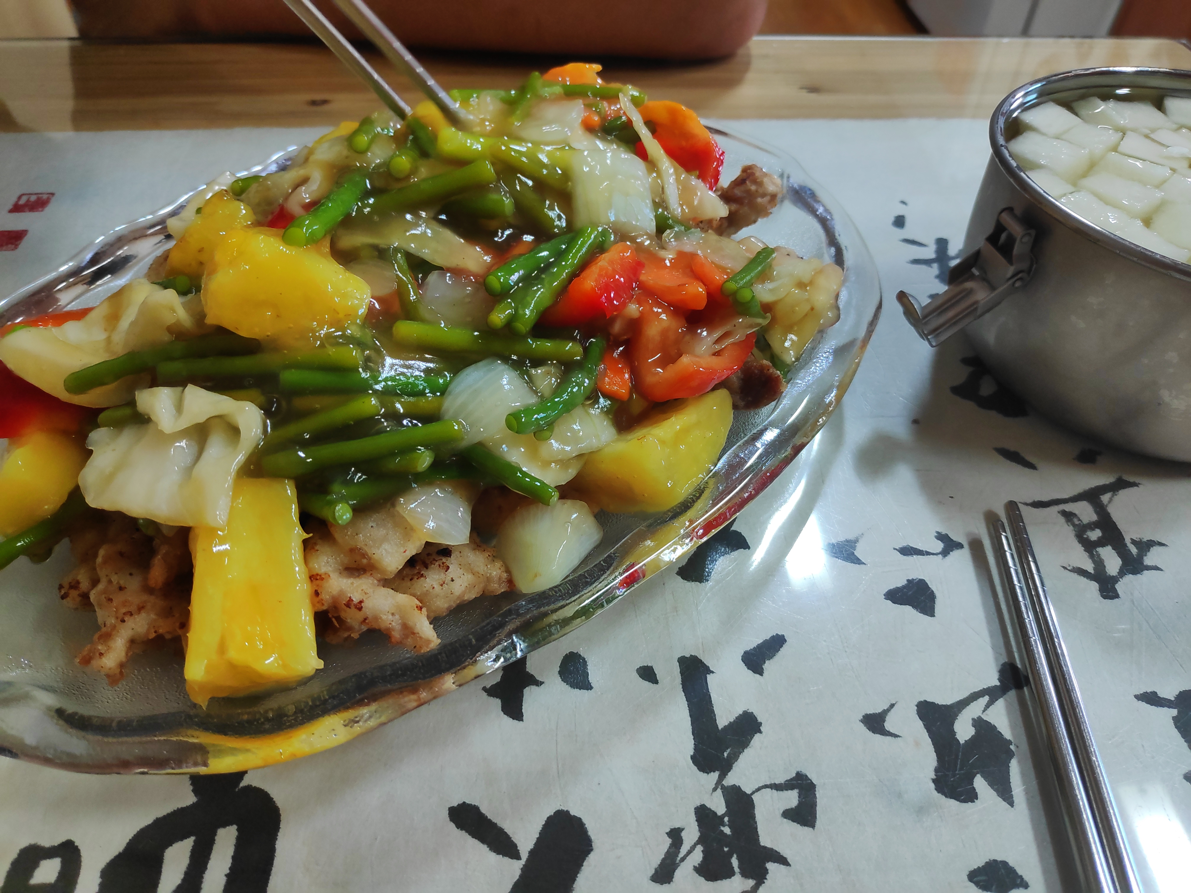 파인애플 숭덩숭덩 썰어 넣은 탕수육 소스가