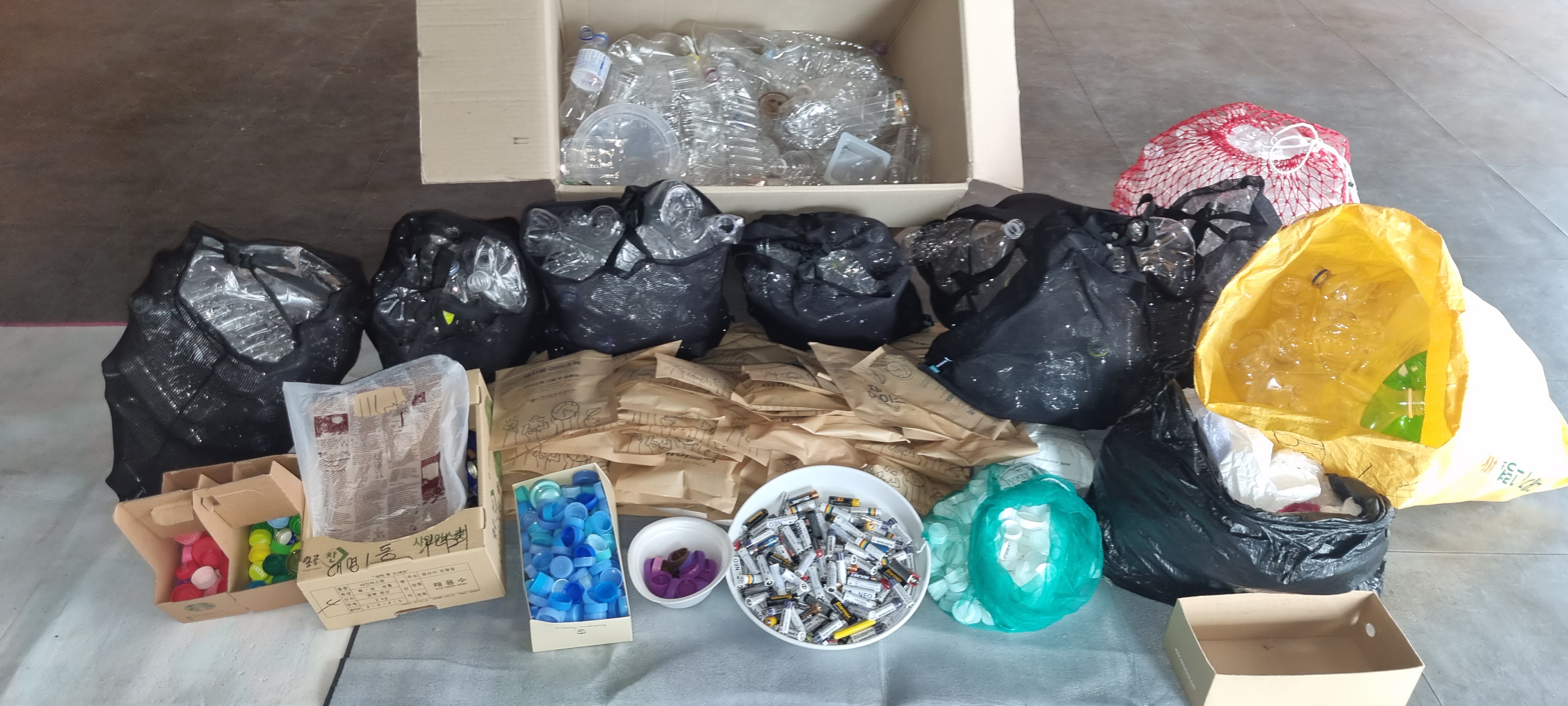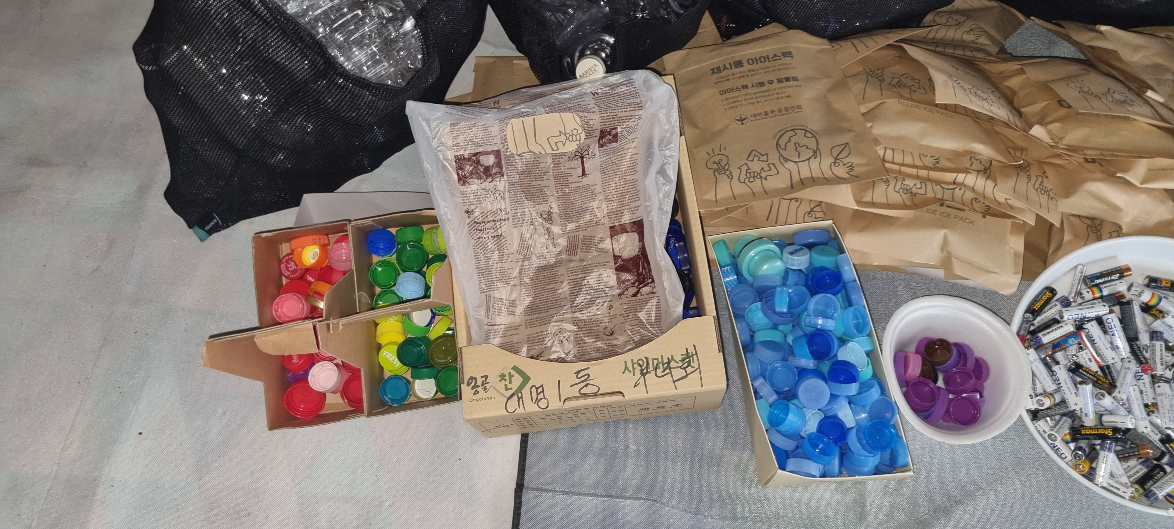 폐 PT병 칼라별로 뚜껑 모으기