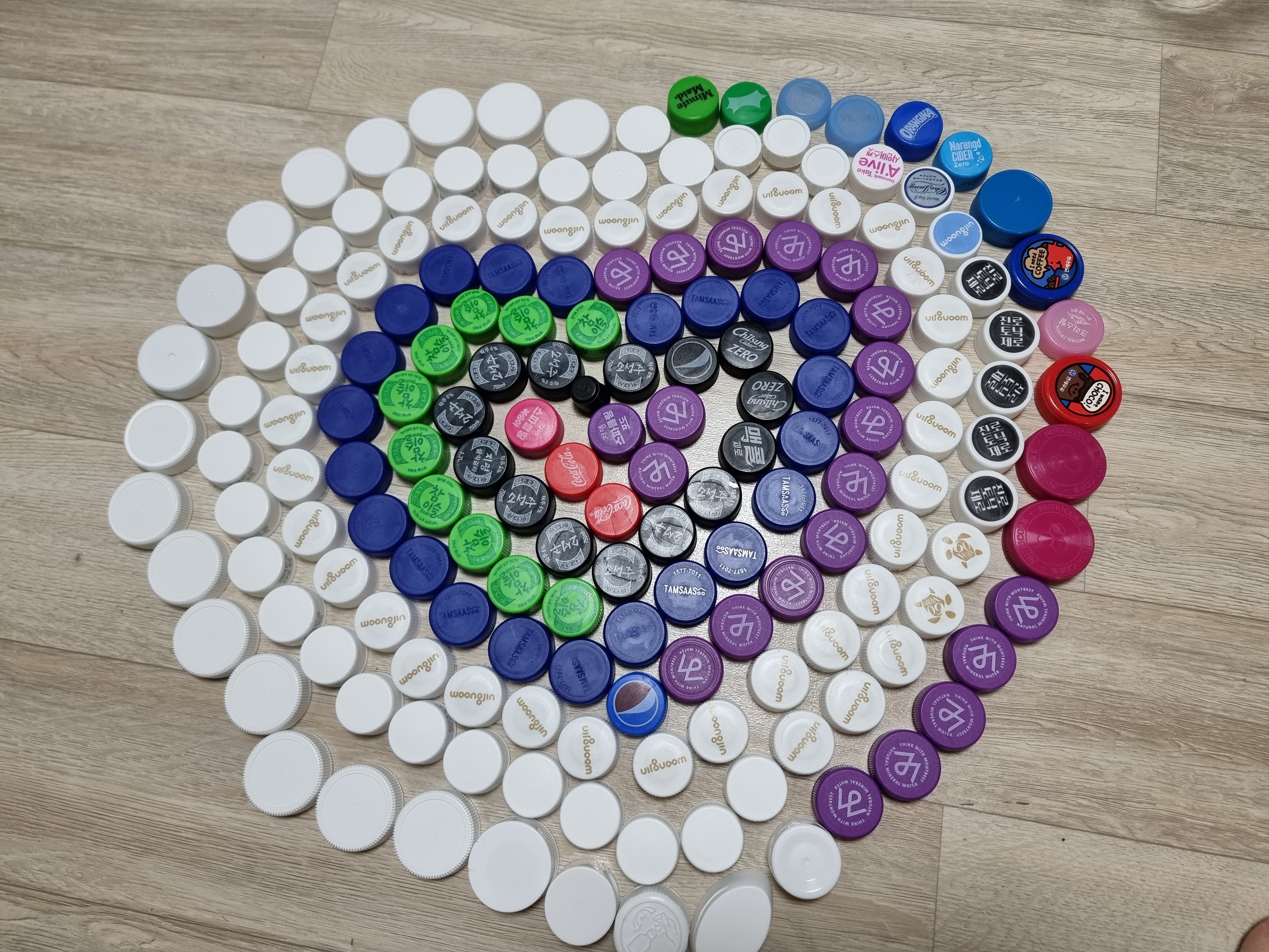 병뚜껑 열심히 모으고 지구를 사랑하는 마음을 표현해봤는데 생각처럼 하트로 안 되네요 ㅠㅠ