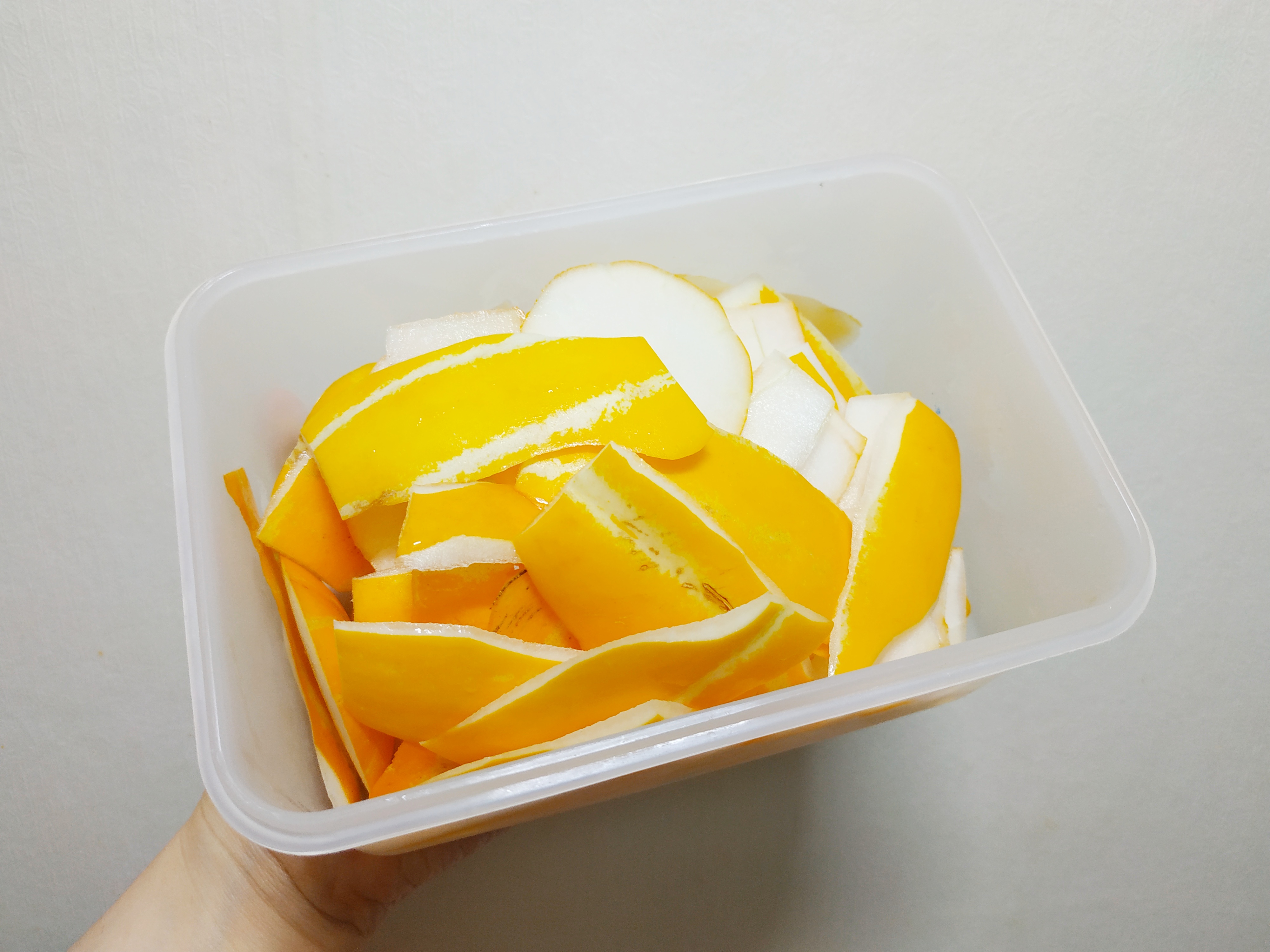 평소 웬만한 채소, 과일은 깨끗이 씻어서 껍질째 먹는데 참외는 껍질이랑 먹으니 식감이 너무 별로라 싹 벗겨냈어요. 버리지 않고 모아뒀다가 다른 채소랑 같이 갈아서 건강주스 만들어 먹었습니다.