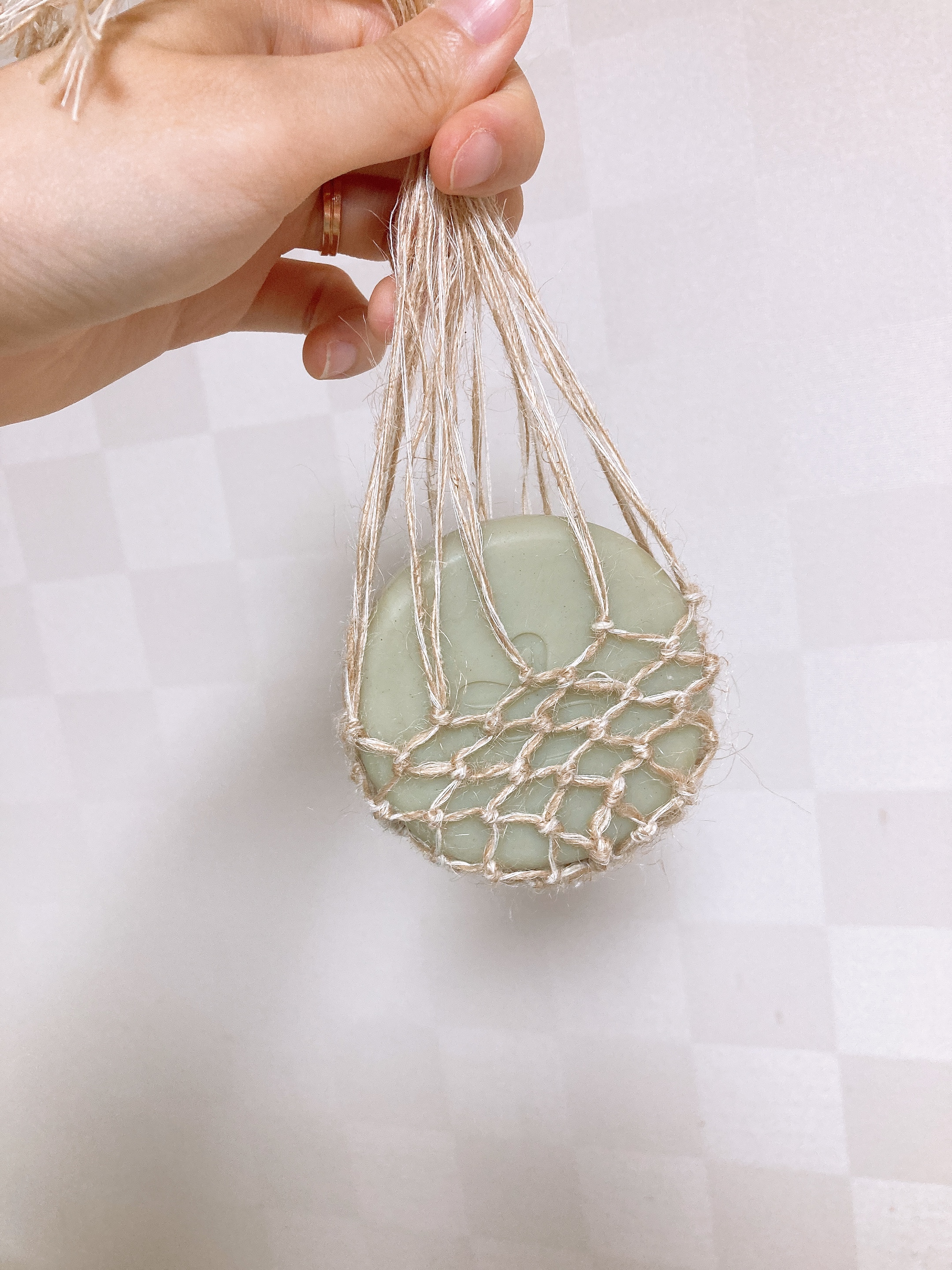 삼베실로 비누망 만들고 있어요.