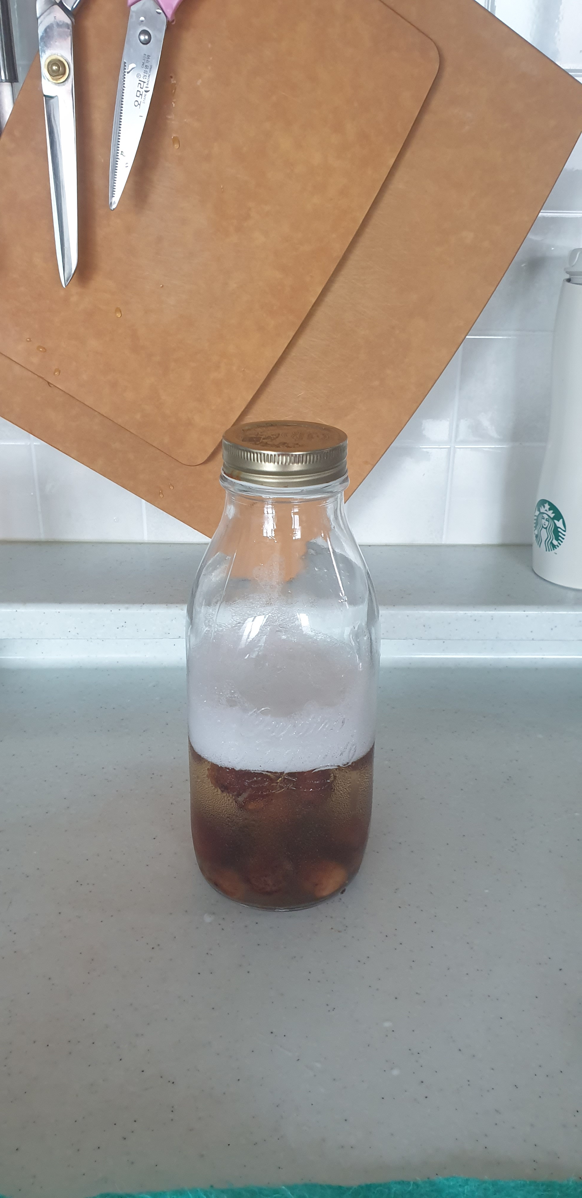 물양이 ⅓정도 줄을 때까지 약불로 계속 우린 후 유리병