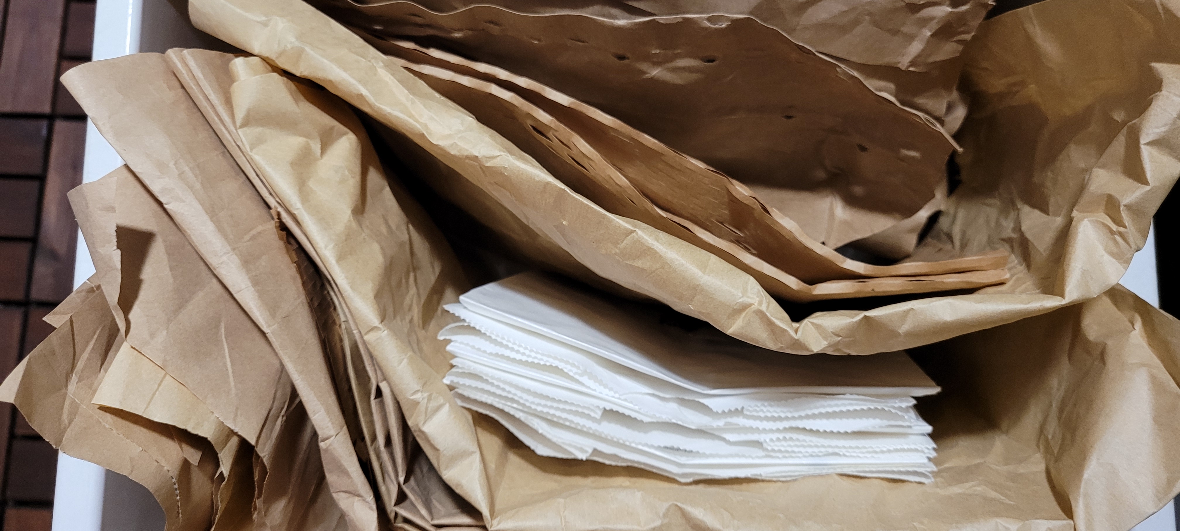 택배안 포장지가 너무 멀쩡한데 그냥분리수거로버리기 아까워요~지저분한야채나 나물다듬을때 한번더 사용하고버리거나 재포장용지로쓰거나 물건보관시 어떨까해서 모아두니 너무좋아요^^
