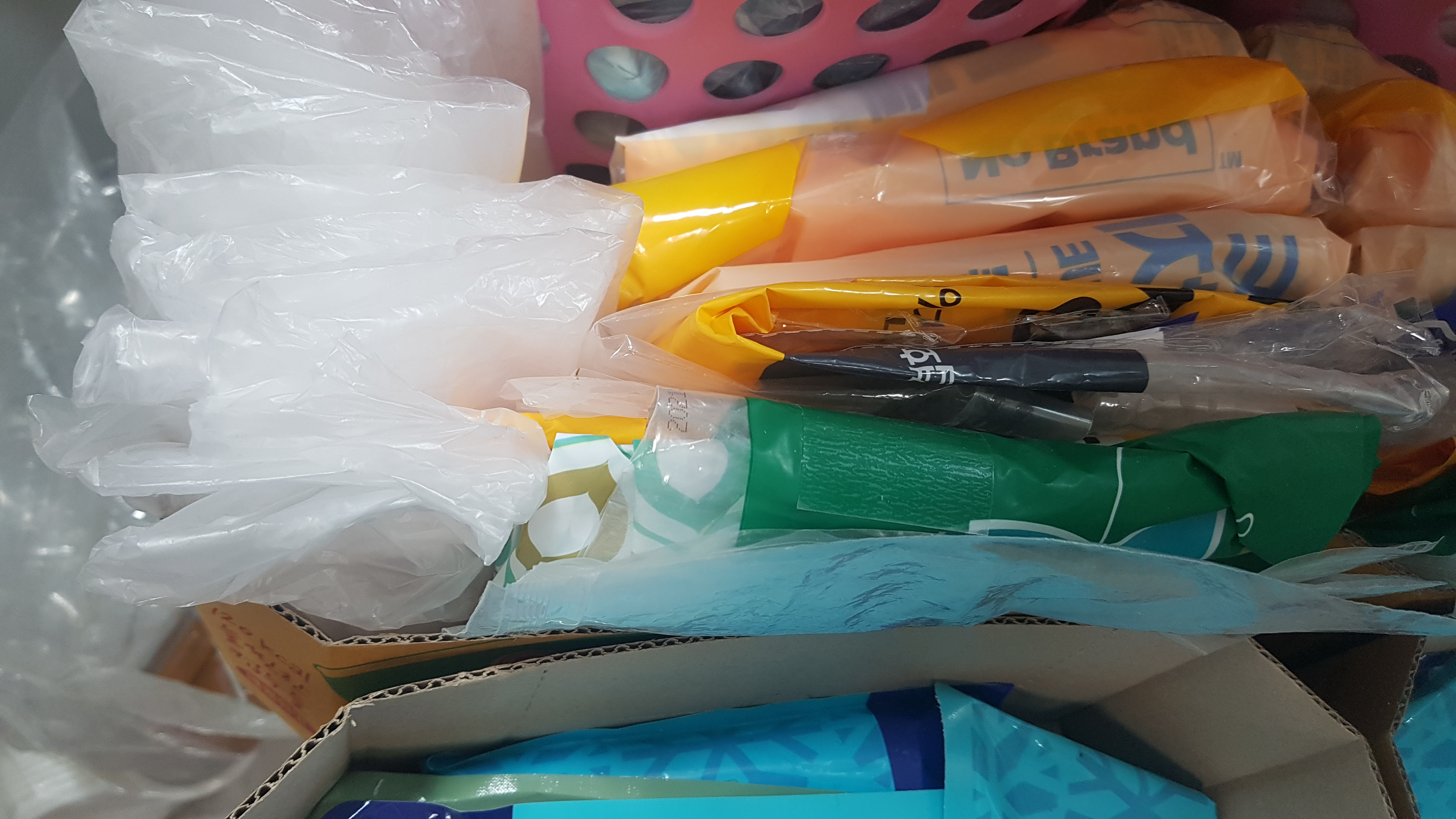 그걸 그냥 버리기가 아까워서 잘 접어서 한 곳에 정리해 놓았어요. 그걸로 새비닐 대신 사용하면 이미 나온 쓰레기를 한 번 더 재활용해서 쓸 수 있고 좋더라구요. 주방 바구니 한쪽에 정리해놓고 필요할 때 사용합니다.