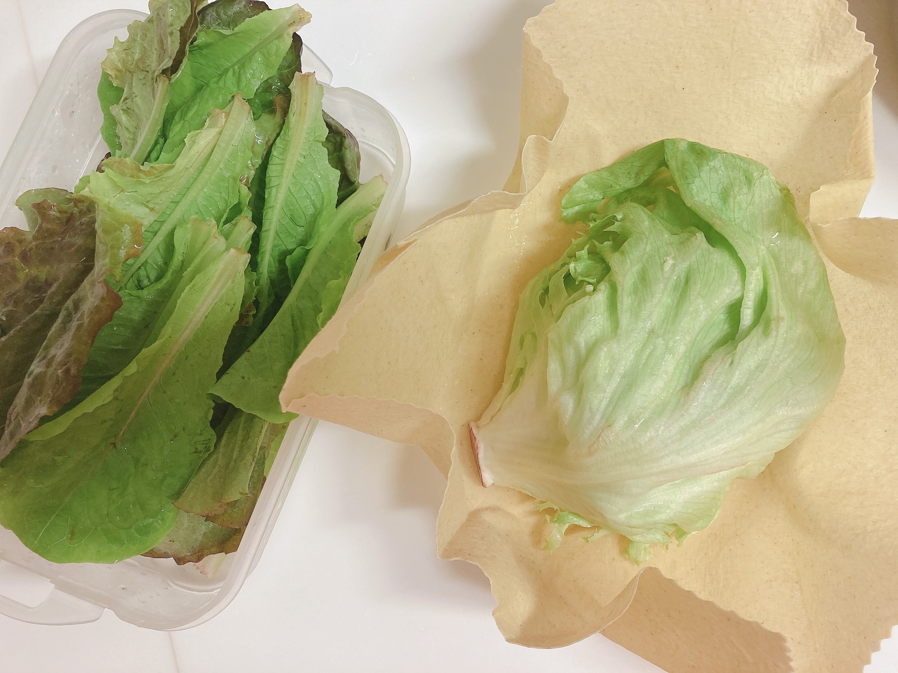 - 2. 물이 잘 발생하는 야채 밑에는 키친 타올 한장을 깔아 오래 신선도를 유지할 수 있게 해줍니다.