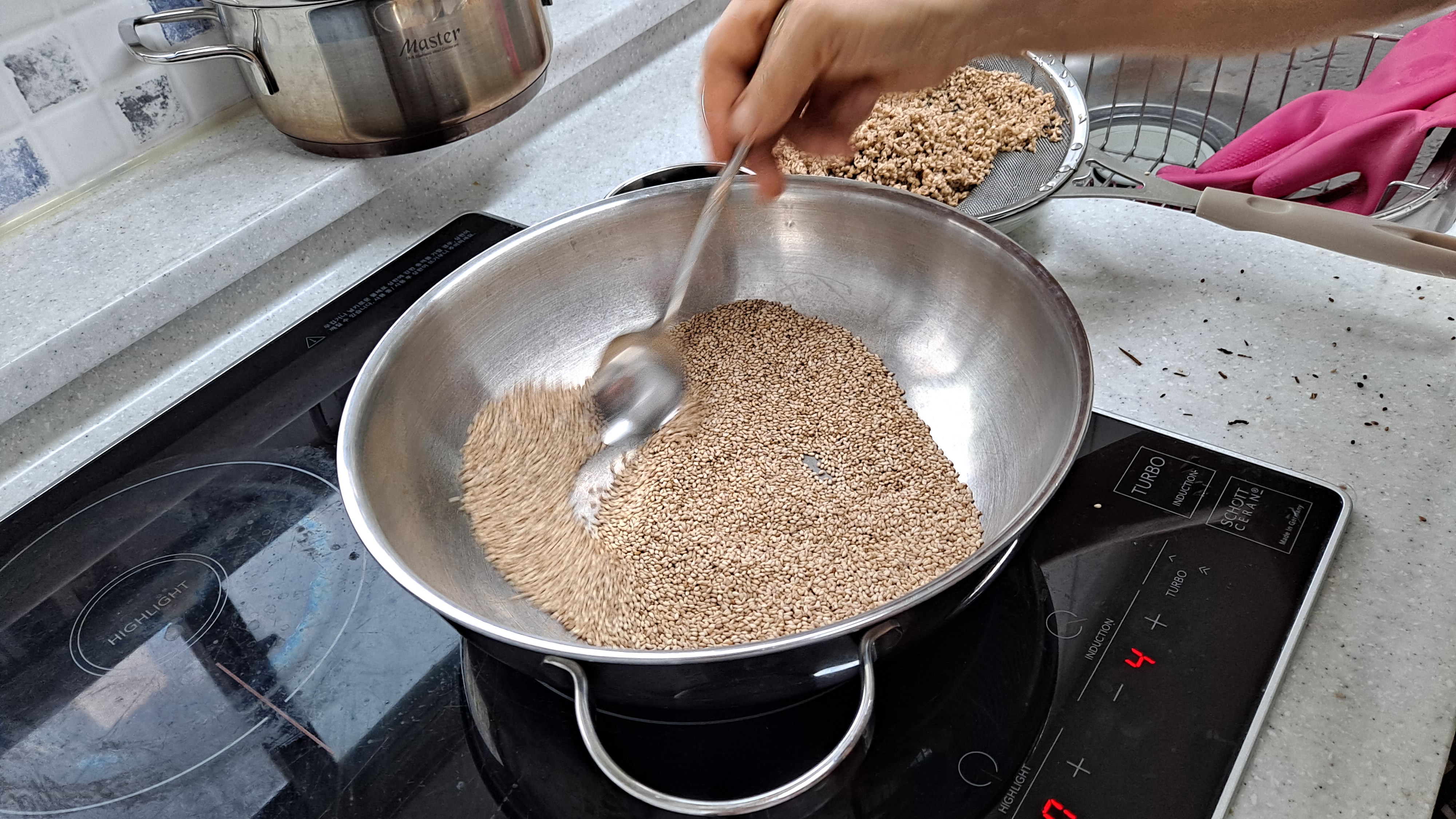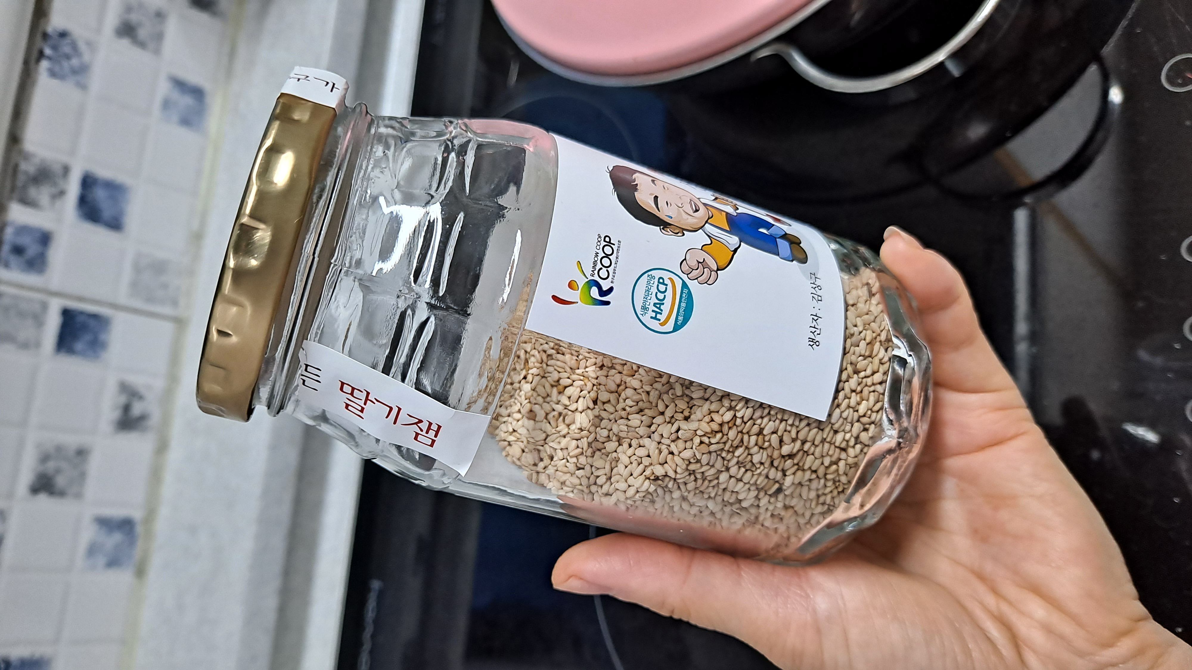 딸기잼을 사먹고 다 먹은 유리병을 깨끗이 세척하고 깨를 볶아서 담았어요 곧있음 아들이 독립하는데 이것저것 챙겨주면서 깨도 볶아서 챙겨주려구요~ 새 유리병을 사서 담아주려다가 잼이 담겨있던 유리병이 있길래 여기에 담아주니 쓰레기도 줄이고 낭비도 줄일 수 있었네요~