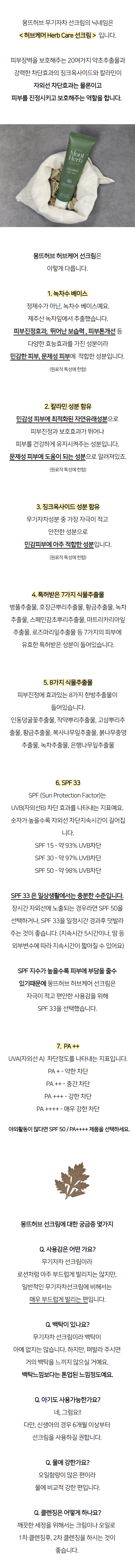 [몽뜨허브] 무기자차 선크림 50ml