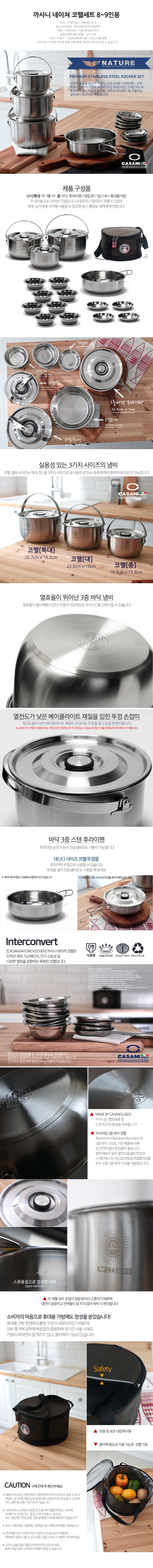 [까사니]_네이처 스텐코펠_8-9인용냄비(특대/대/중-1P씩)/팬_후라이팬1P/대접8P/접시4P/휴대용가방(보온/보냉)