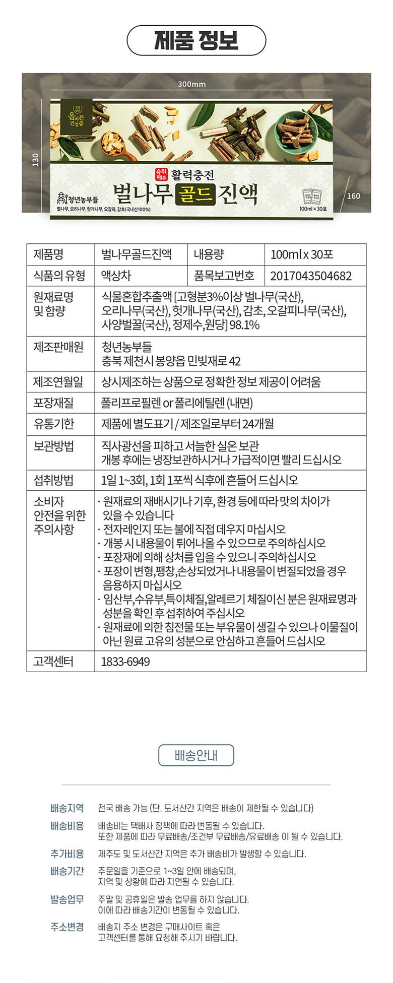 청년농부 벌나무골드진액 100ml x 30포 상품이미지