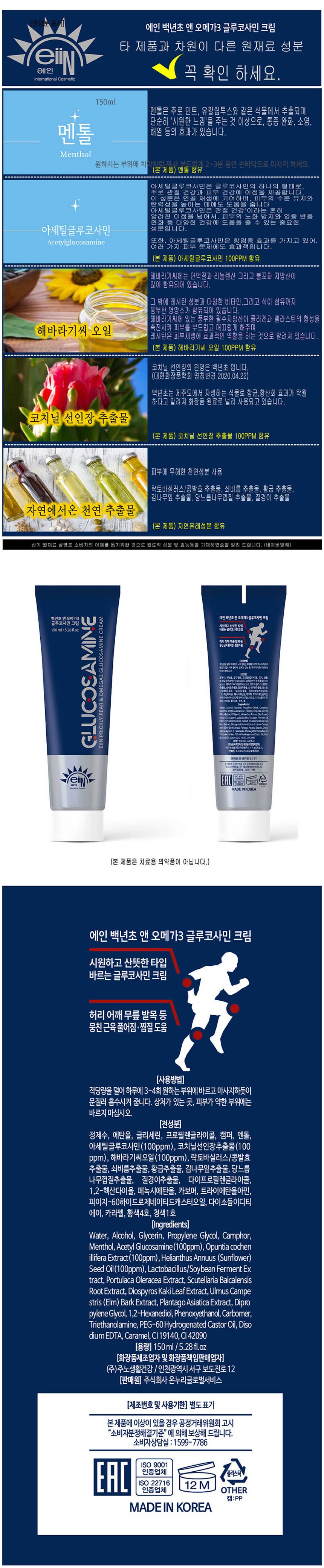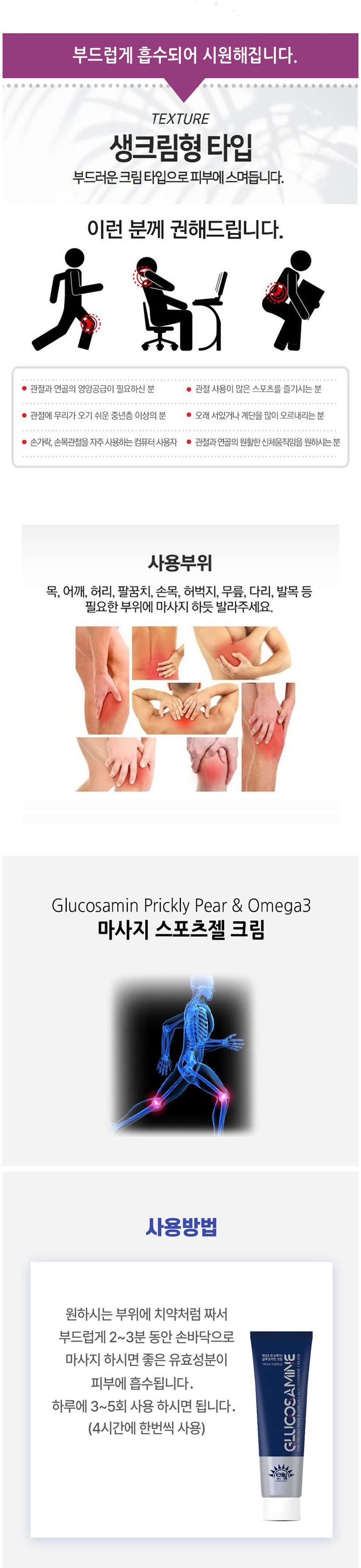 지브로와 백년초 오메가3 글루코사민 스포츠젤 근육 통증 마사지 크림 1+1