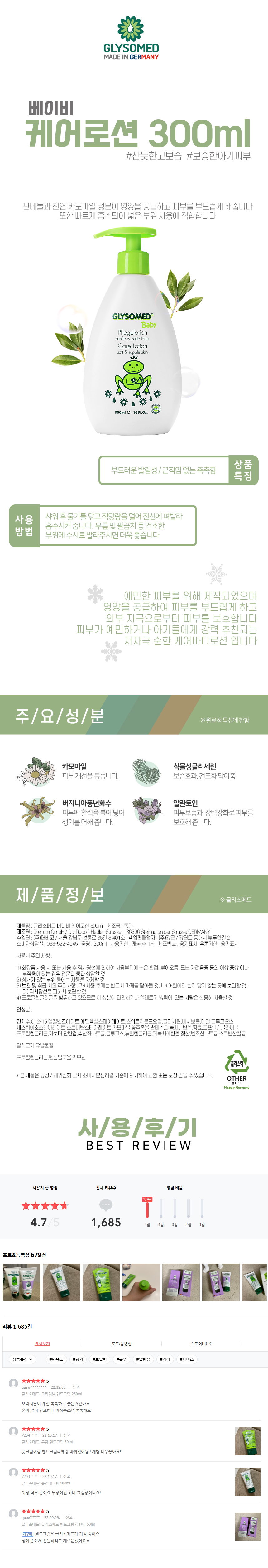 독일 글리소메드 베이비 케어 로션 300ml 상품이미지