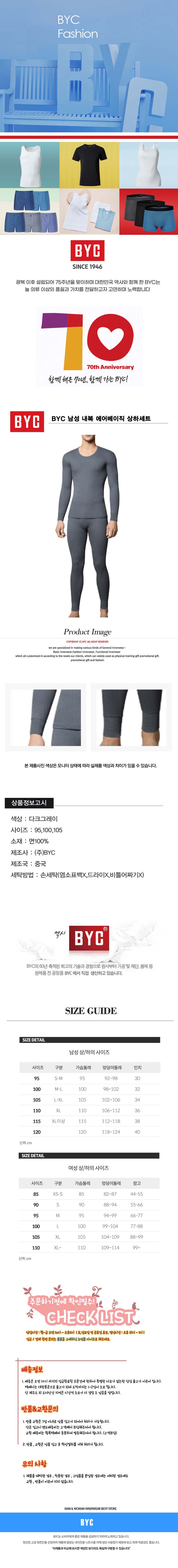 [BYC]남성 내복 에어베이직 상하세트(DAS0084/다크그레이) 상품이미지