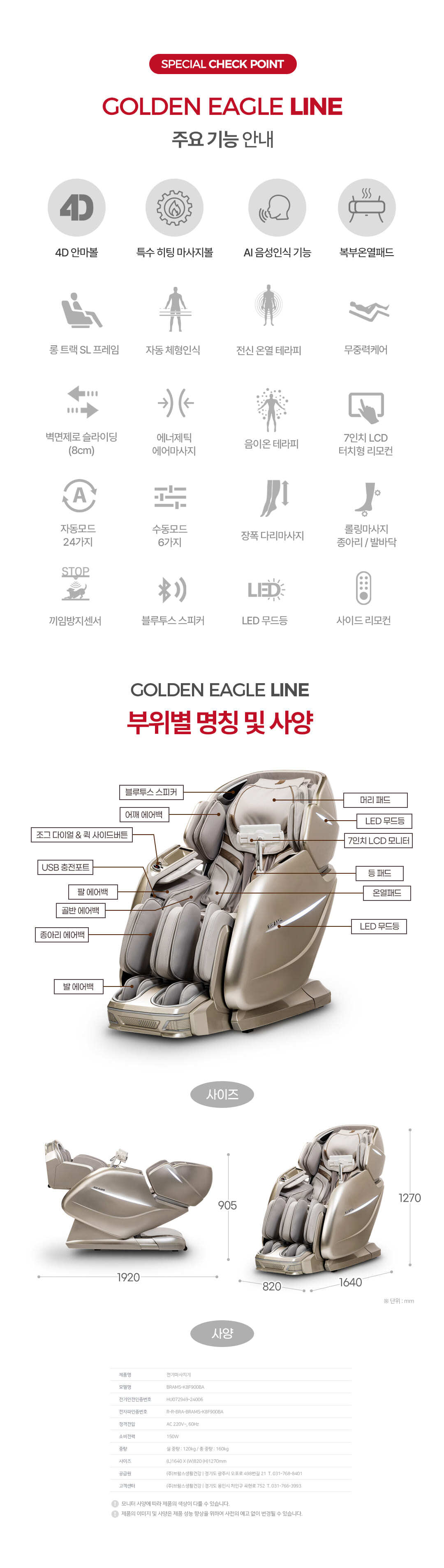 [브람스] 골든 이글 라인 안마의자 BRAMS-K8F900BA