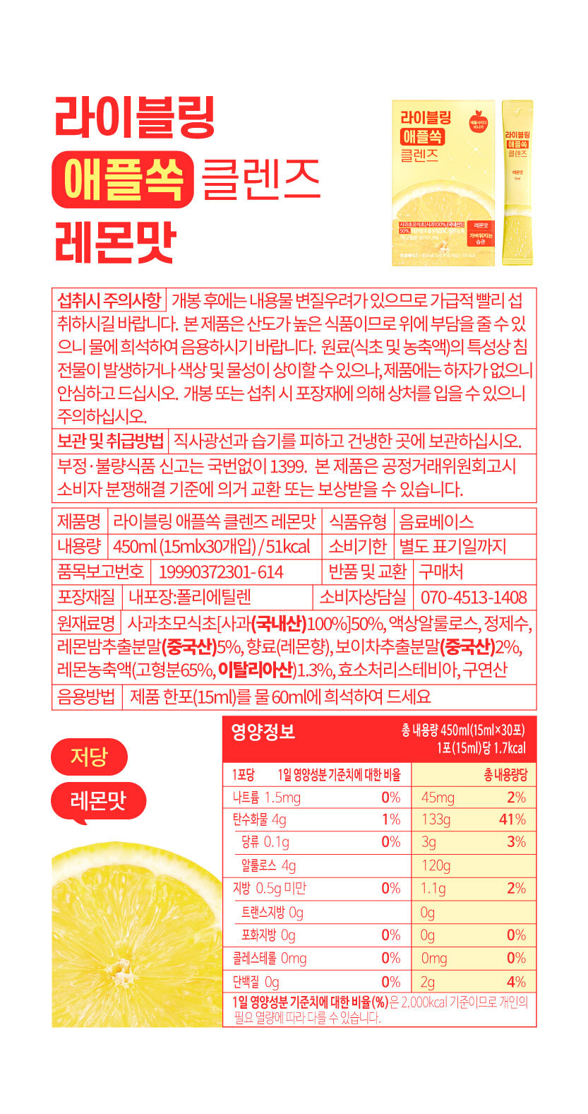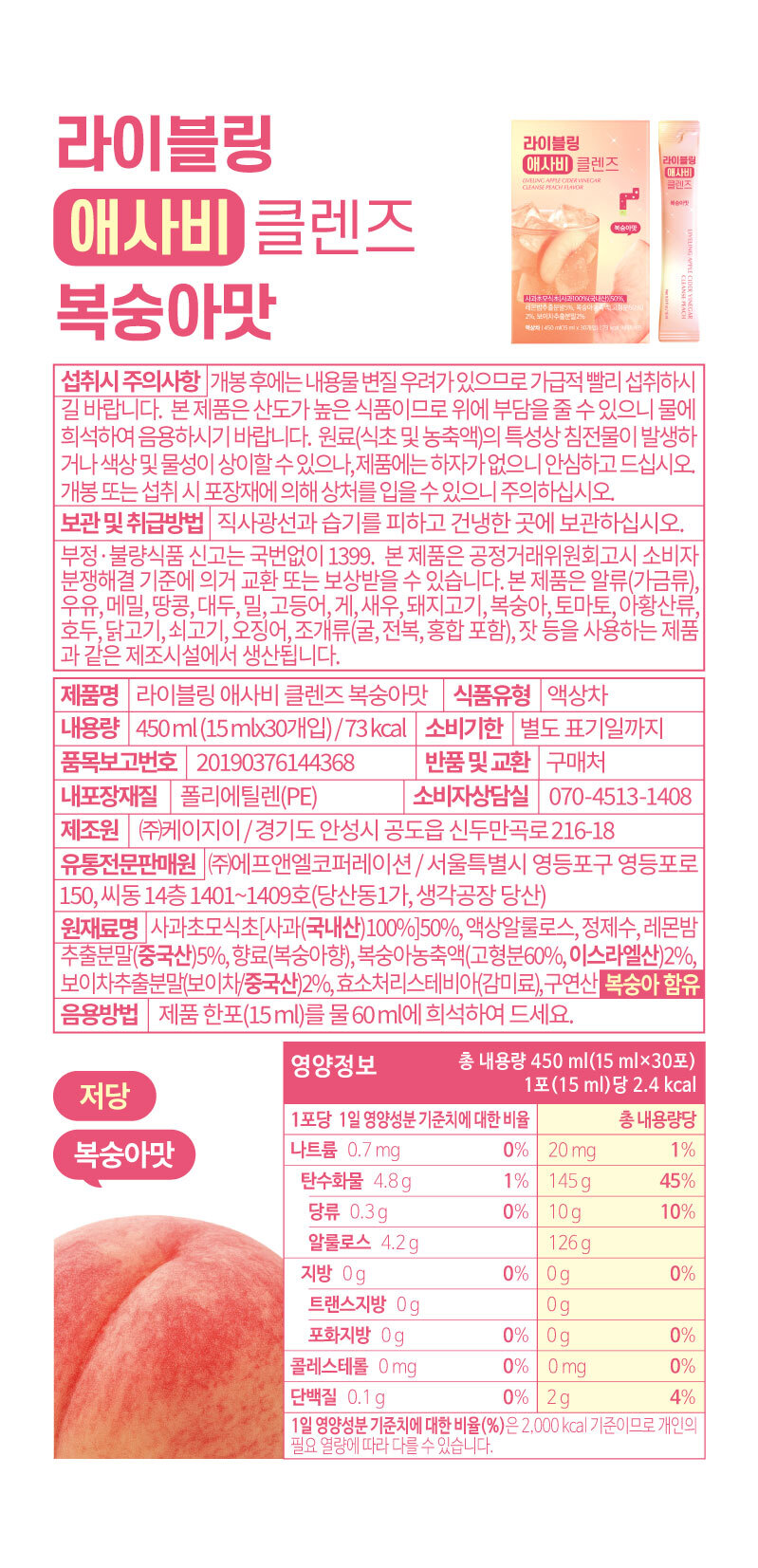 [라이블링] 애사비 클렌즈 15ml x 30포(복숭아맛)