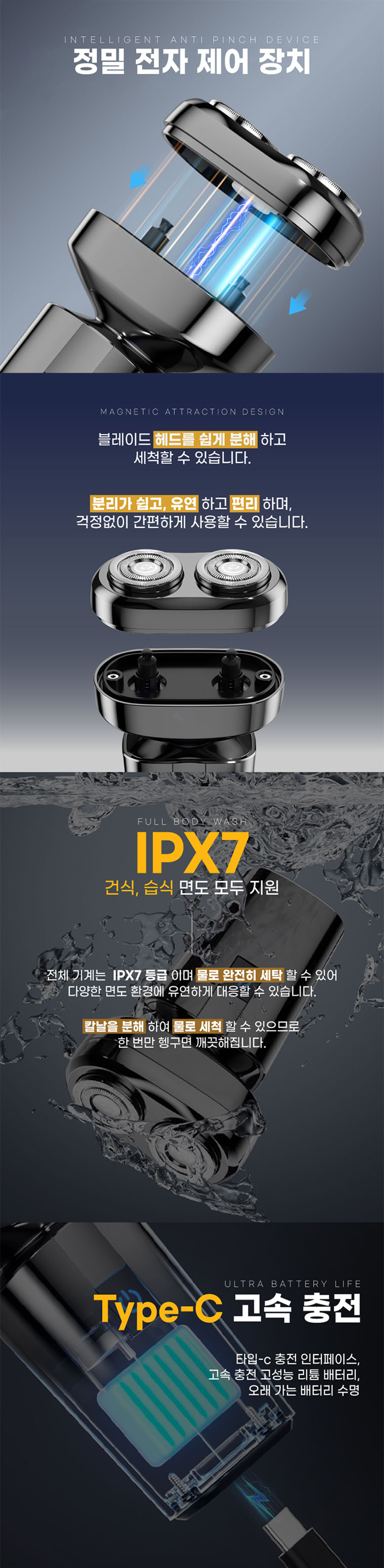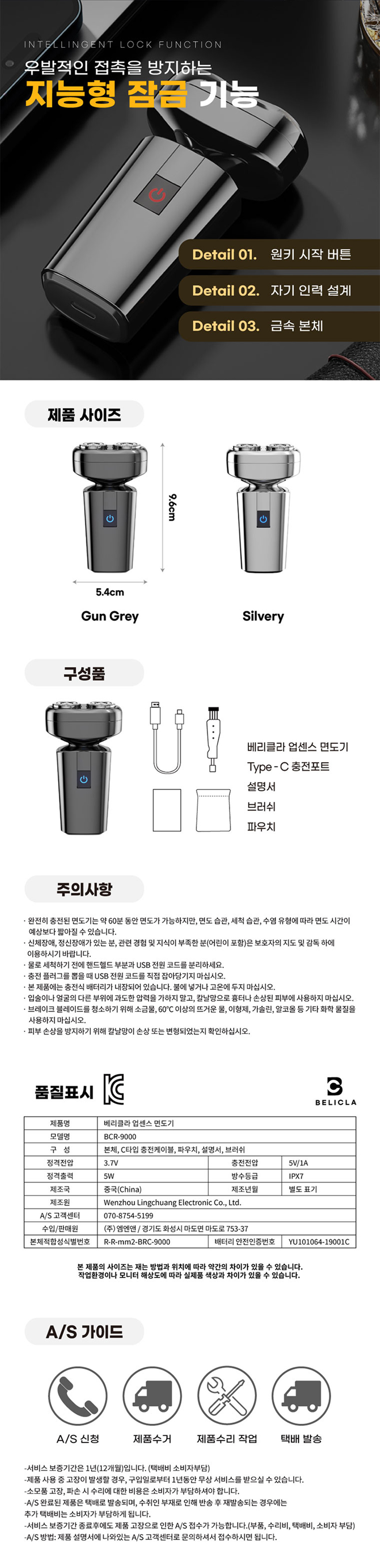 베리클라 업센스 이중칼날 남성 휴대용 전기면도기